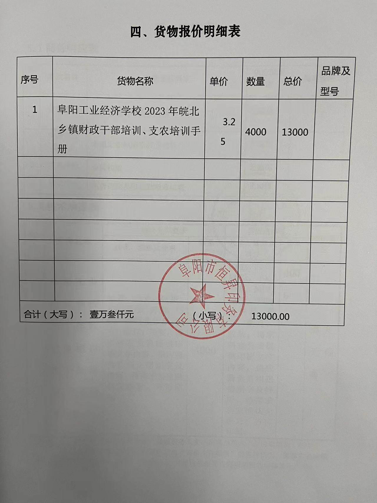 阜阳工业经济学校2023年皖北乡镇财政干部培训、支农培训手册采购项目中标公示[中标公告]