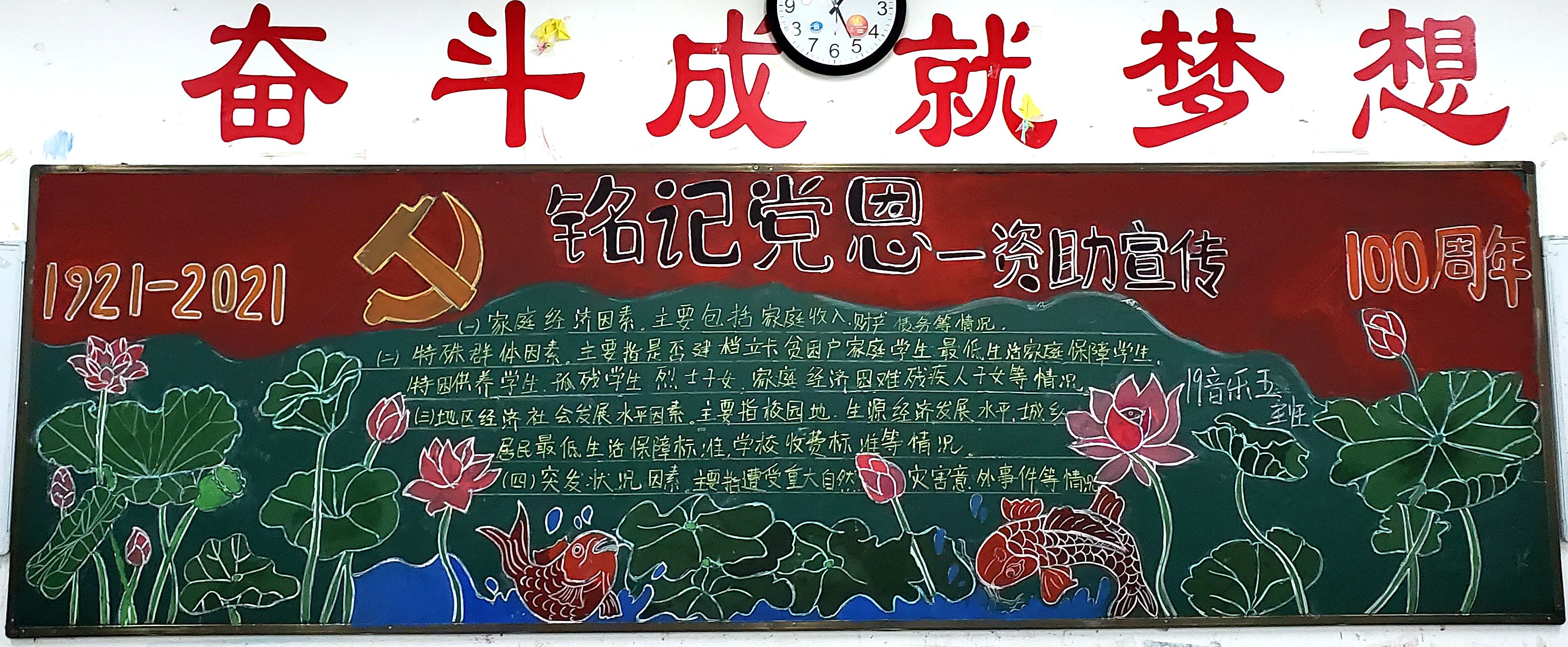 阜阳工业经济学校积极深入开展党史学习教育活动,掀起了党史学习教育的热潮。校团委与资助办于4月22日开展以“学党史、知党情、跟党走”为主题的黑板报举办活动,各年级积极筹划,各班黑板报办得有声有色,得到广大师生的好评。