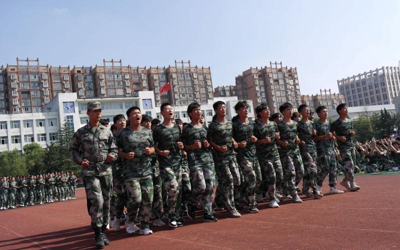 为提升学生国防素养,增强国防观念,培育爱党、爱国、爱军情怀,培塑爱国主义、集体主义和革命英雄主义精神,促进学生全面发展,我校于9月22日--30日在南校区和东校区进行了为期9天的军训。为检验军训训练成果,表彰在军训中表现优异的先进个人和班集体,9月30日,我校两校区在田径场分别举行2021级新生军训会操暨总结表彰大会。学校领导、颍州区武装部教官、相关科室负责人,2021级班主任及全体新生参加大会。大会由副校长范峰主持。