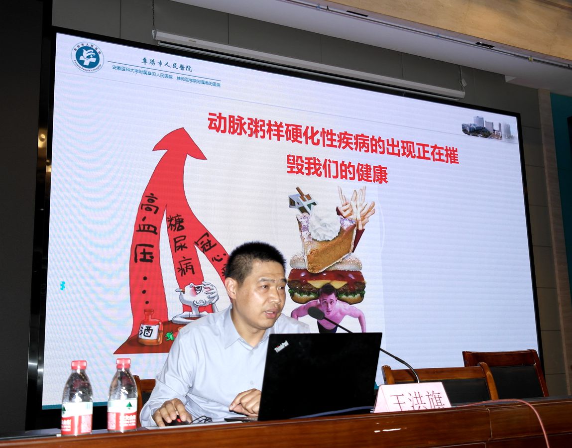 讲座中,市医院心脏重症病区副主任、健康宣讲团成员王洪旗以《关注高血压——保护心脑肾》为专题,结合丰富的临床经验和专业知识,围绕高血压防治指南、合理膳食、适量运动、戒烟限酒、心理平衡、倡导健康生活方式等方面深入浅出地进行了讲解,内容全面且实用。