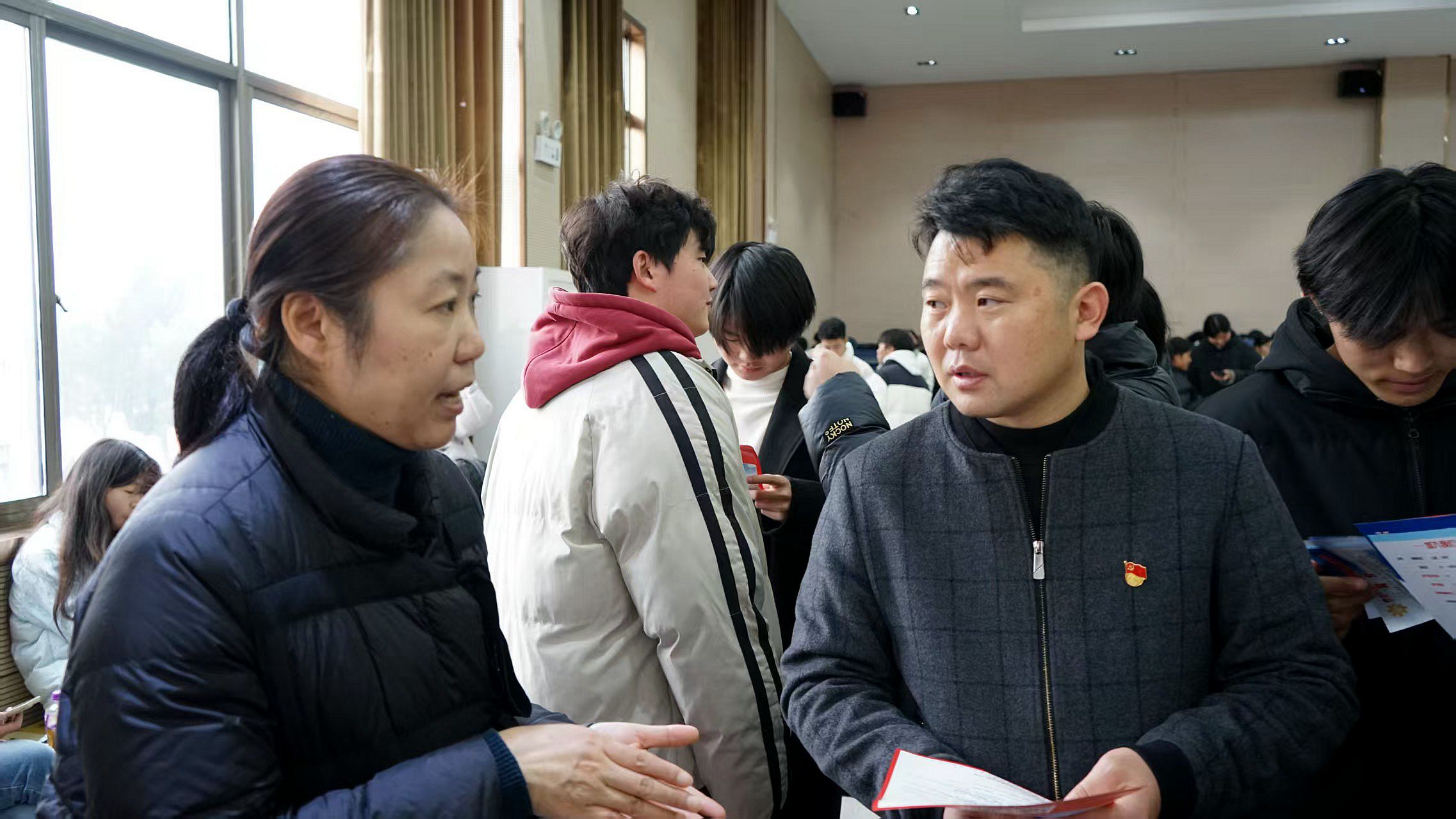 校党委书记陈颍峰,党委副书记、校长孙杰,党委委员、副校长孙道远等先后亲临双选会现场指导工作。他们与企业代表深入洽谈,详细了解企业用工需求与人才培养期待,就深化订单式培养、共建实训基地、推进产教融合长效机制等议题交换意见,为后续校企合作提质增效奠定基础。同时,领导们走到学子中间,仔细询问求职意向,指导大家结合专业特长与职业规划理性选岗。