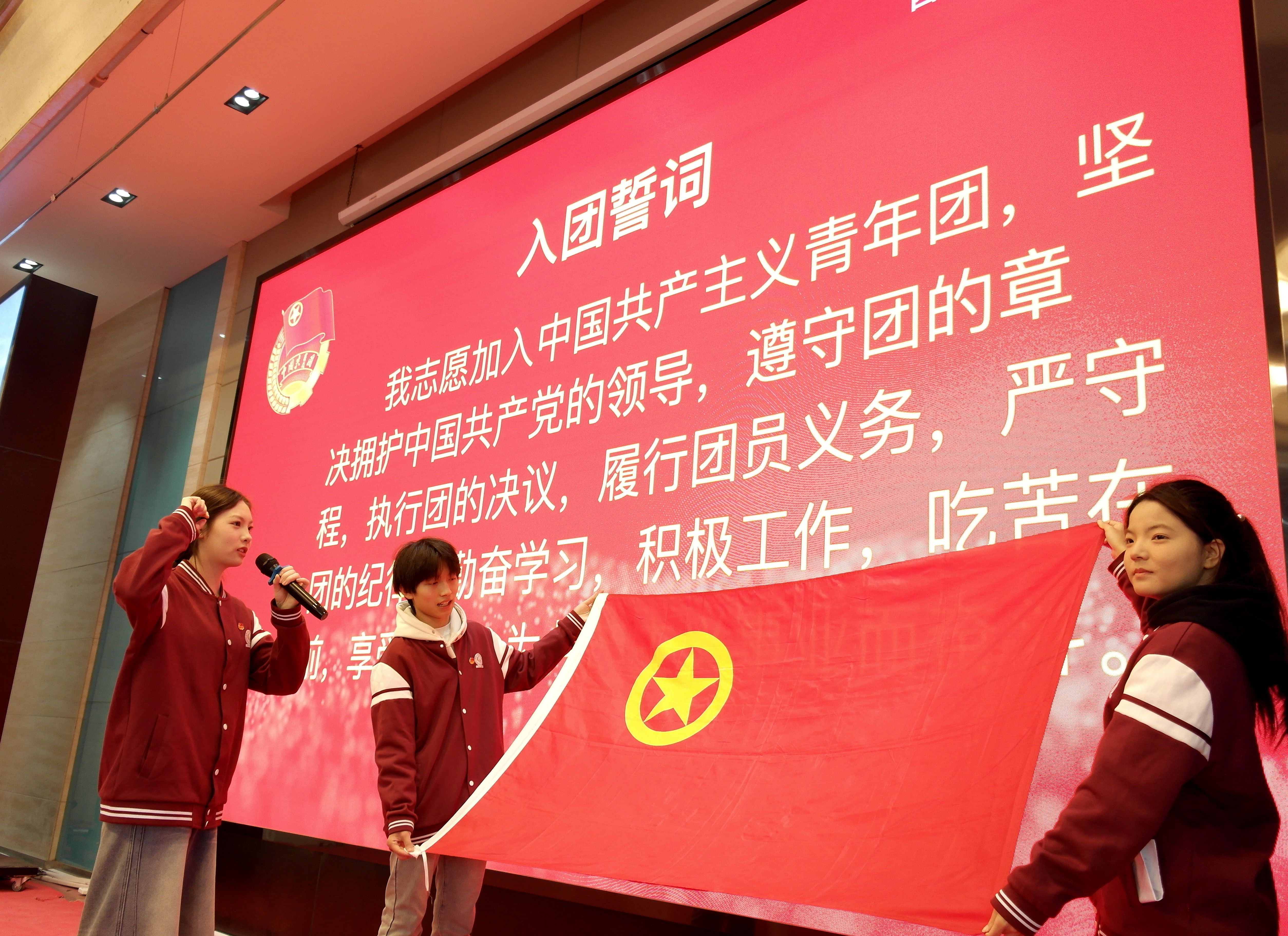 校党委副书记、校长孙杰向新加入共青团组织的团员表示祝贺,并向新团员提出希望和要求:一是记住新身份。时刻牢记团员使命,以团员标准严格约束自己,一举一动皆为标杆、一言一行堪称楷模。在日常学习生活中,你们要勇于亮明身份、争当表率,让自己更优秀、带动更多的人,让团徽在胸前闪闪发光。二是担起新使命。立足专业勤学苦练,把课堂所学转化为实操能力,在实训车间打磨匠心,在技能赛场锤炼本领,成长为能工巧匠、大国工匠的后备军。三是拿出新作为。积极投身备战高考、技能创新、校企实践、志愿服务等活动,把个人成长融入学校发展和时代大局,用实干诠释青春担当,用拼搏书写无悔年华,在强国建设、民族复兴的征程中贡献青春力量。