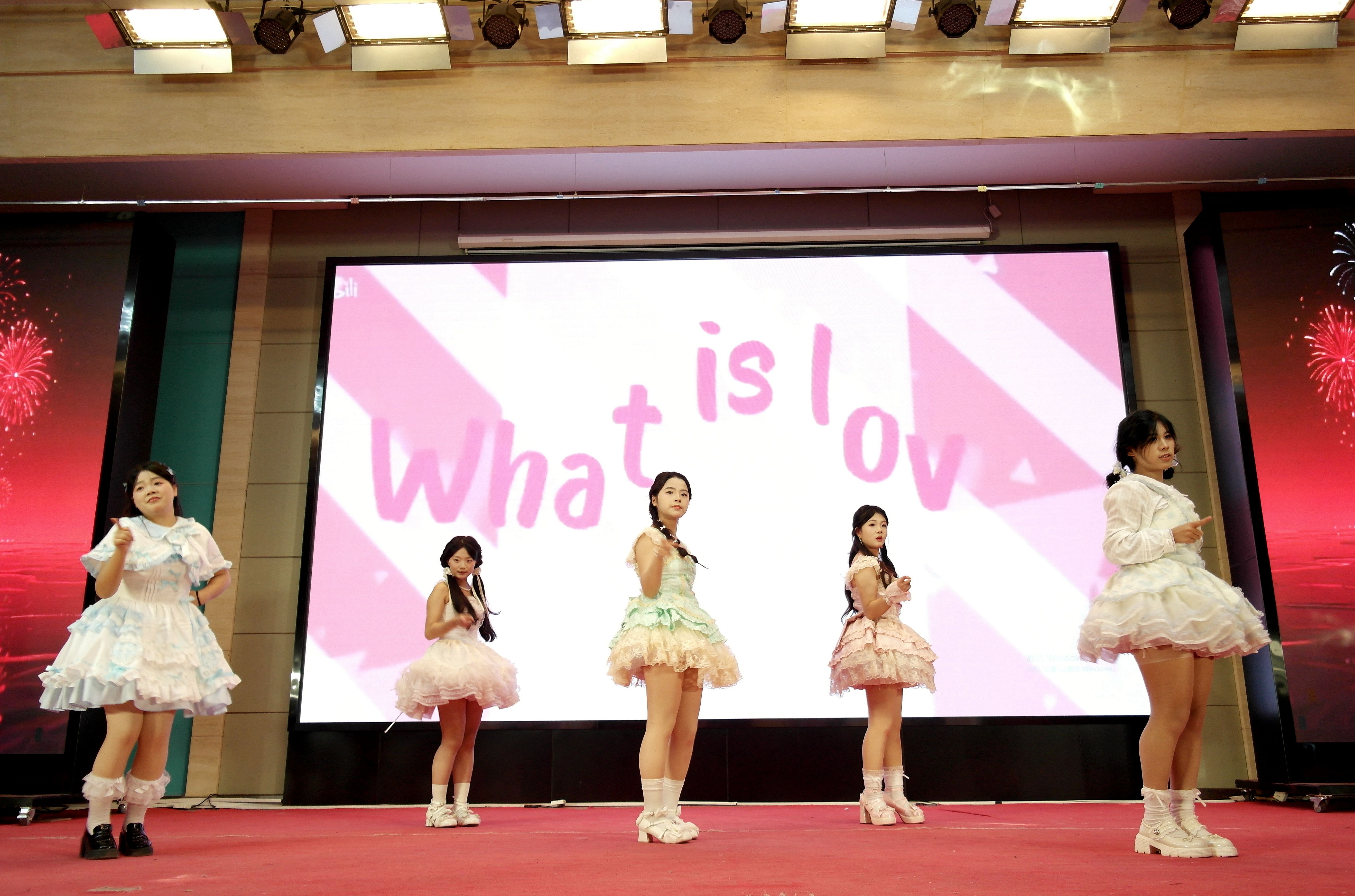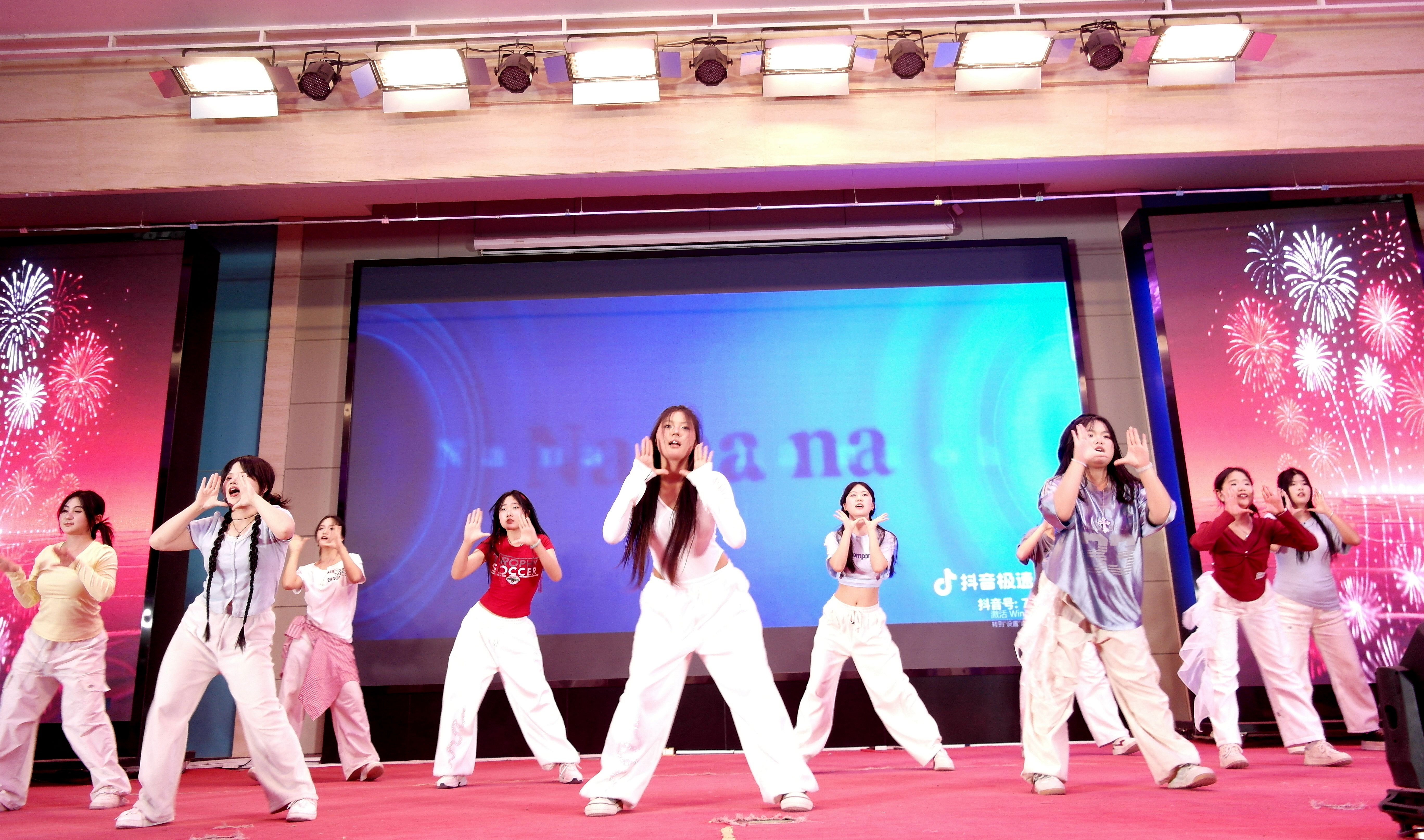 伴随着激昂的旋律与绚丽的灯光,开场舞《爱的主打歌》率先登场。学子们身着潮流服饰登台,激昂旋律搭配灵动多变的队形,动感舞姿裹挟着青春热血,瞬间点燃全场氛围。