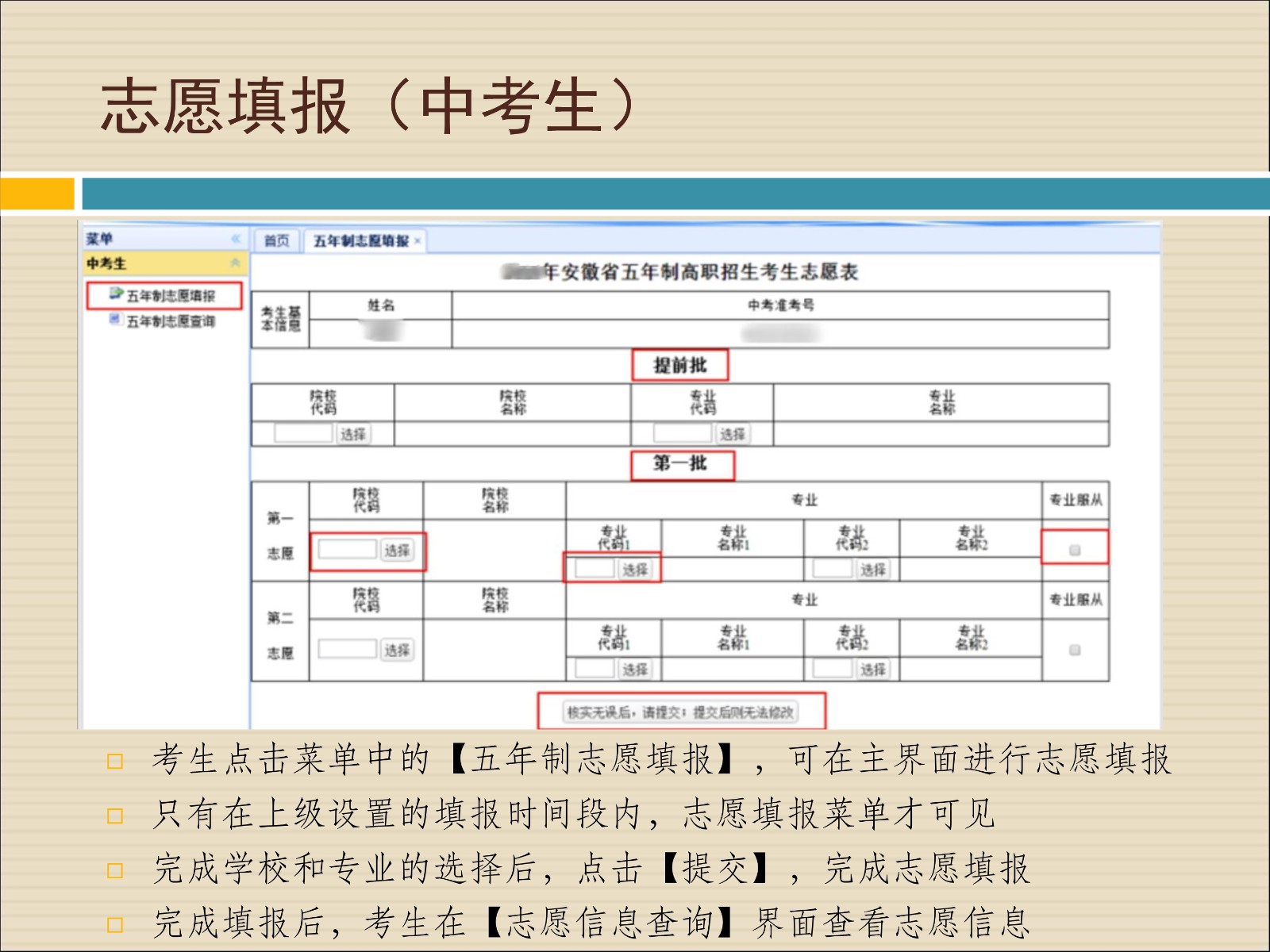报考五年制高职学校考生使用指南