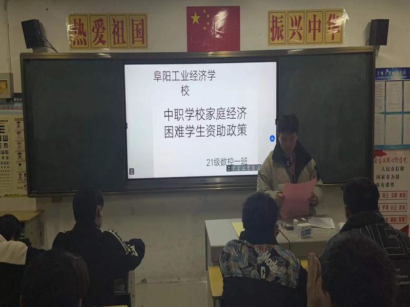阜阳工业经济学校各班级本周利用晚自习时间开展了资助政策宣传主题班会活动。