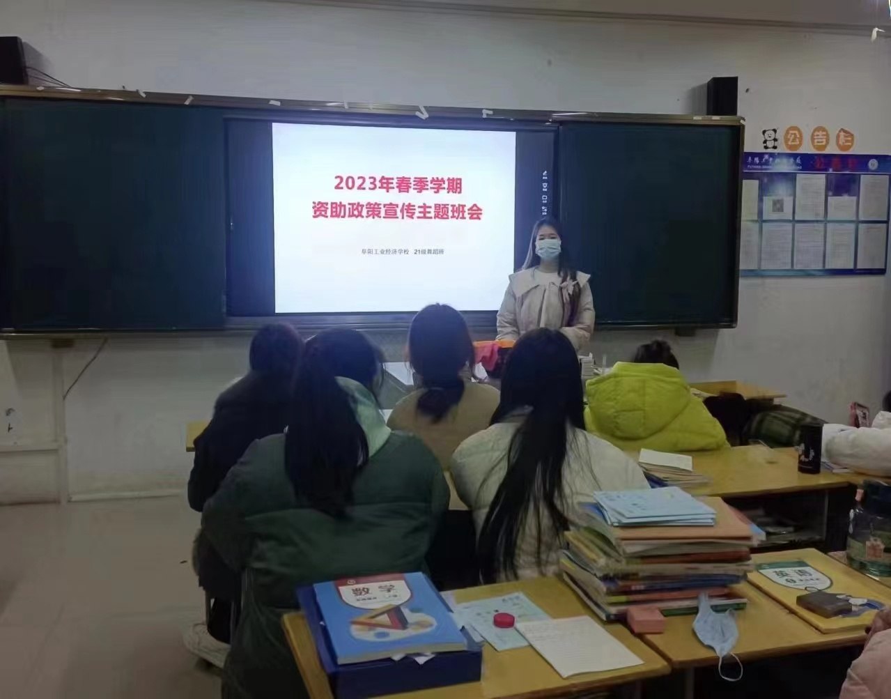阜阳工业经济学校2023年春季学期各班级利用晚自习时间开展了学生资助政策宣传第一课主题班会活动。