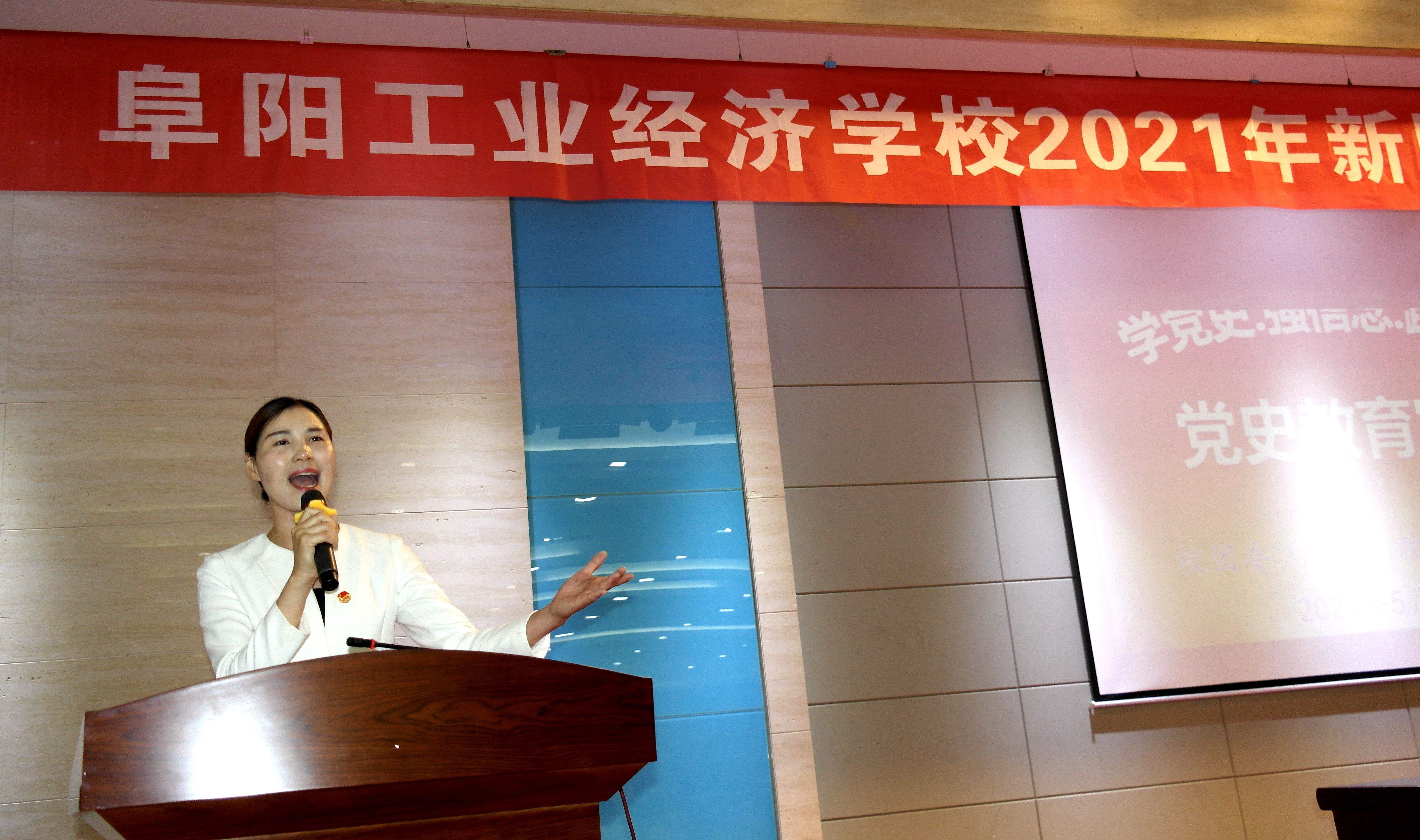 5月12日,“传承红色基因 勇担时代使命”2021年阜阳工业经济学校新团员集中入团宣誓仪式暨学党史教育宣讲大会在多功能厅举行。共青团阜阳市委副书记许灿,阜阳工业经济学校副校长范峰、相关科室负责人、学生党支部党员、校团委委员及教师和团员代表三百余人参加了活动。