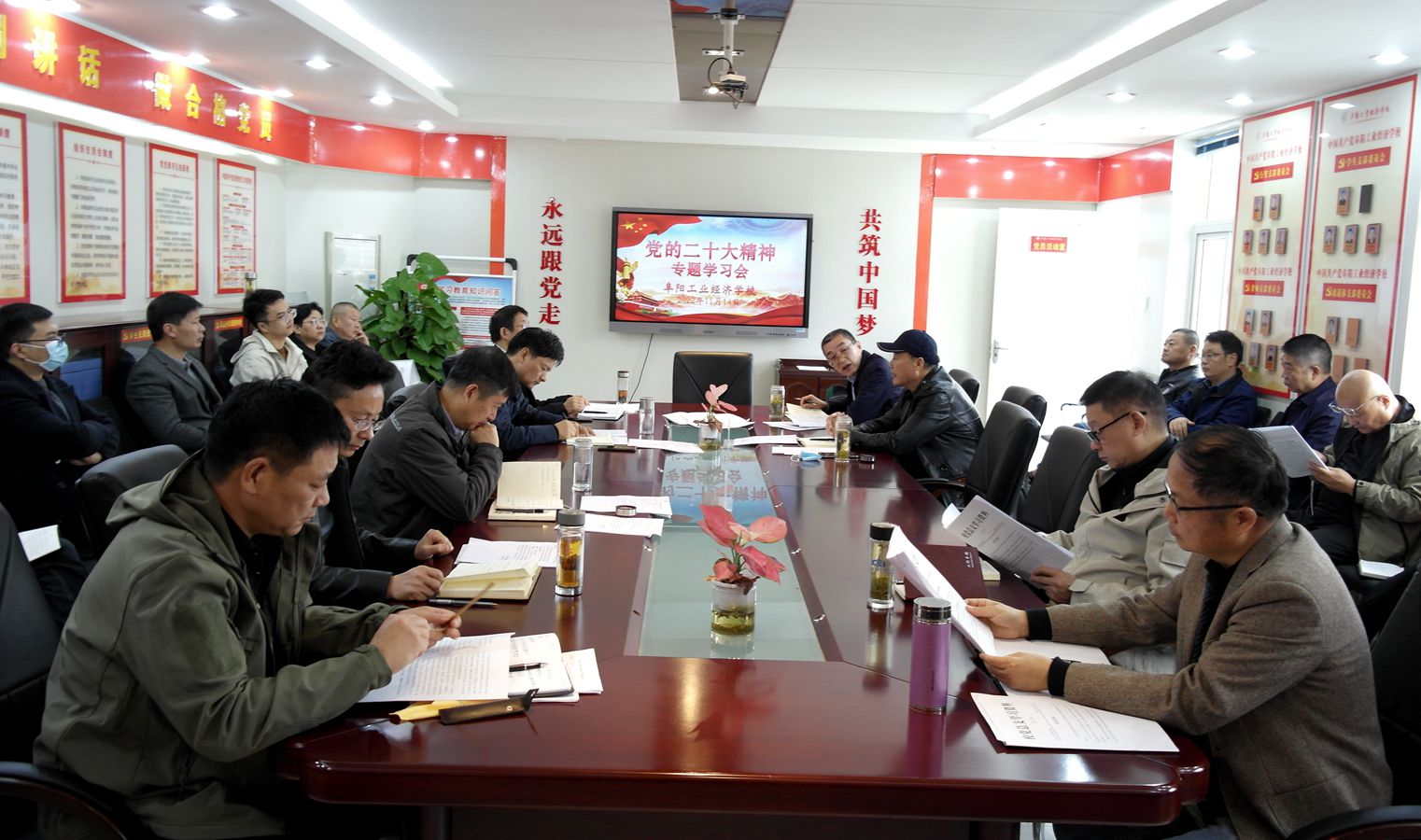 11月14日,阜阳工业经济学校召开2022年第十三次党总支理论学习中心组学习(扩大)会暨党的二十大精神专题学习会。会议由副校长潘光辉主持。校班子成员、各科室负责人参加会议。
