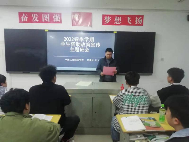 阜阳工业经济学校各班级本周利用晚自习时间开展了资助政策宣传主题班会活动。