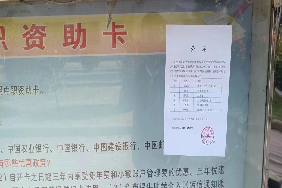 阜阳工业经济学校2023年国家奖学金公示